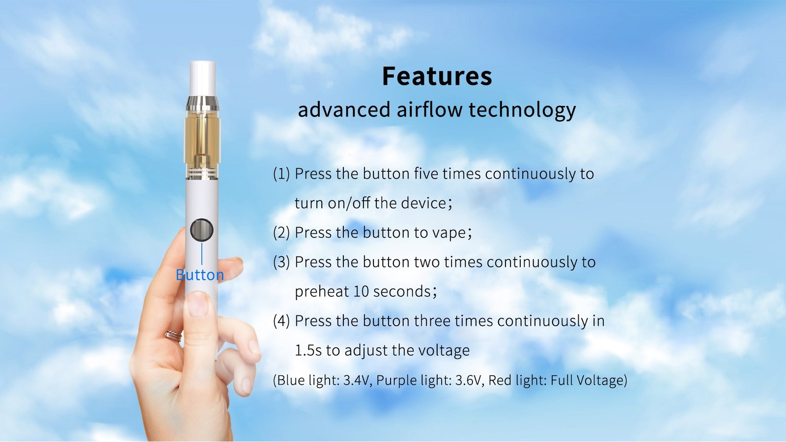 3ml Delta 8 THC HHC THCO Airflow Voltage Adjustable Disposable Preheating Vape Pen