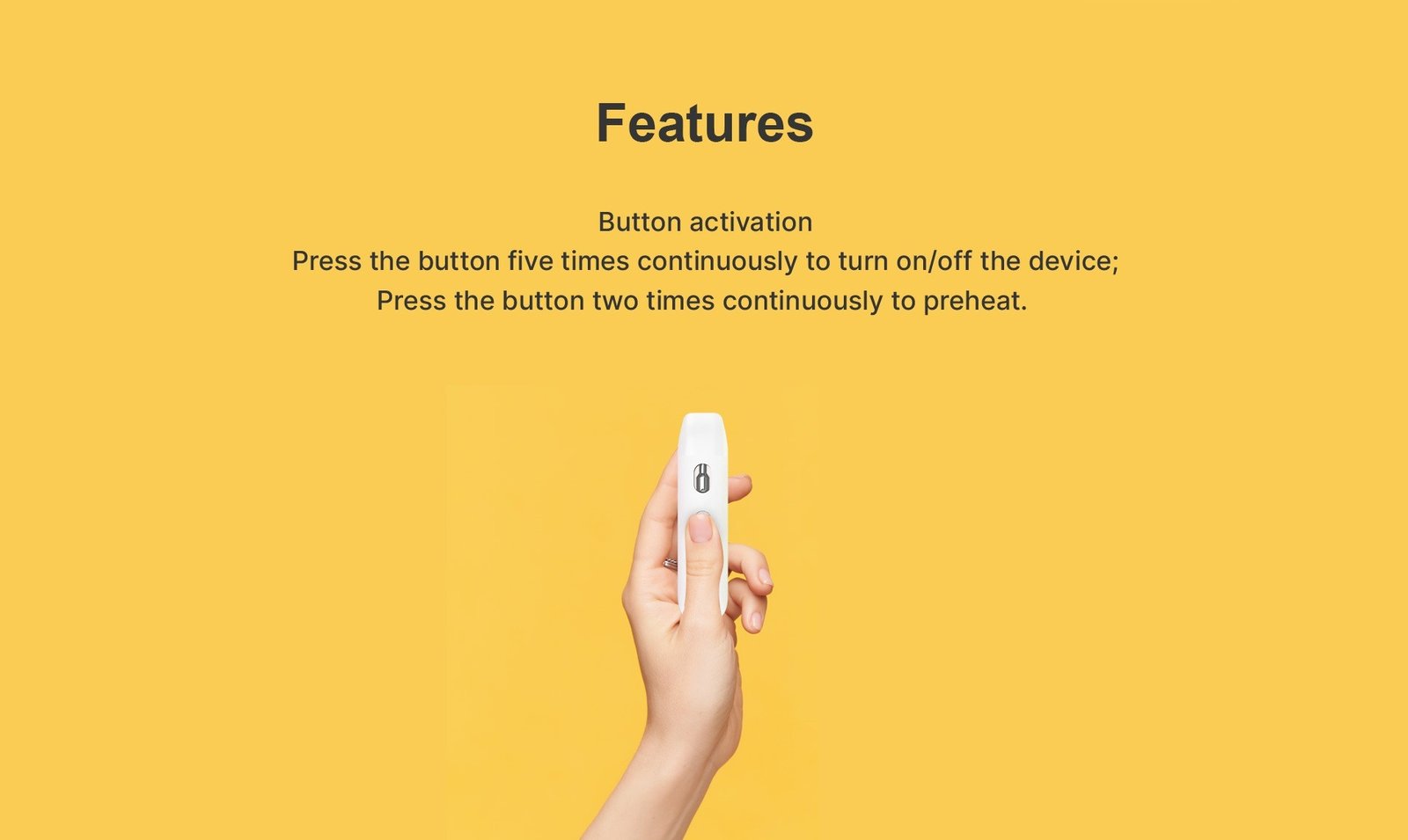 Press the button 5 times continuously to turn on/off the device;